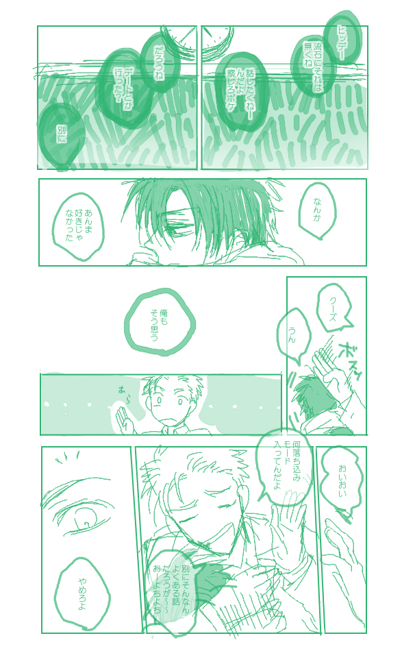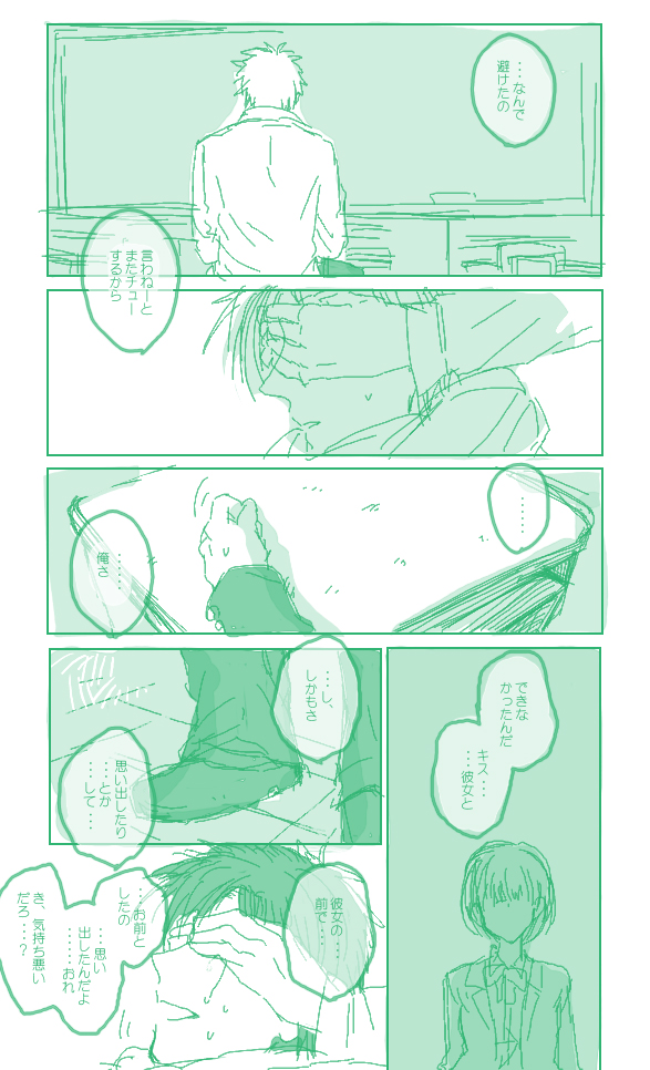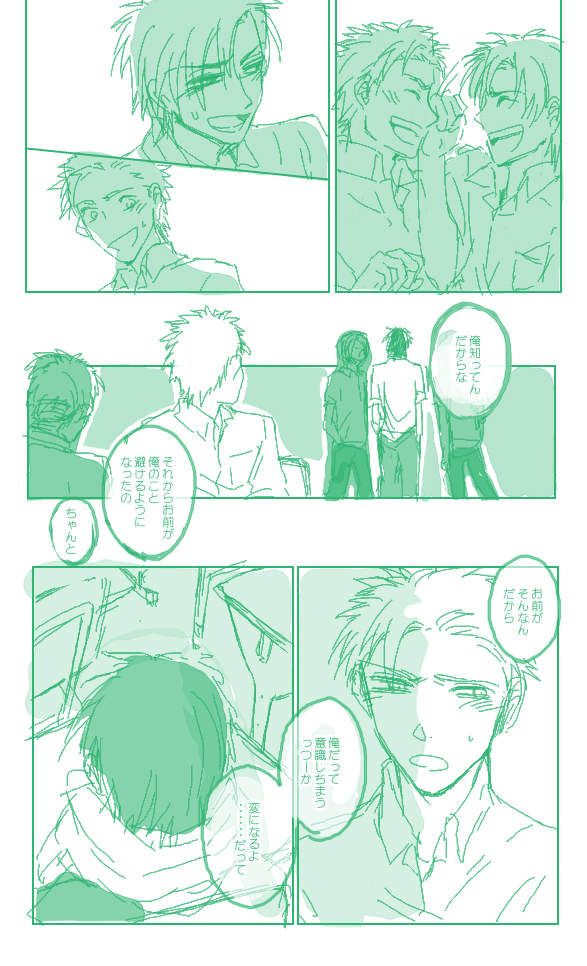 あんまオチてないけどこんなかんじで終わり 一応紹介しとくとこいつらは昔描いたBLマンガのオリキャラなんですがこうして見ると表情とかキャラとか好みに偏っててアレだなーと思いました